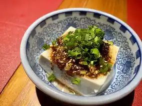 Kyoto Silk Tofu ($60) 😊 As a cold appetizer very appetizing Silk tofu was covered with the restaurant's homemade ingredient sauce, a little spicy, garlic flavor prominent, very tasty