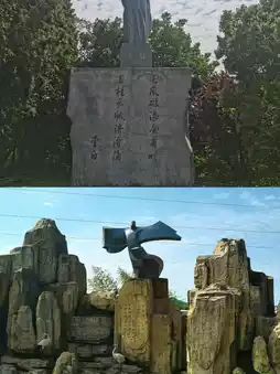 The picture is on the left hand side outside the gate. Picture 12 is the first view you see after getting off the bus. The [Poetry Immortal Holy Land] with its back against the Daqing Mountain looks extraordinary and fairy-like. The statue of Li Bai in Figure 2 stands in an open space after the entrance, and on the walls of the surrounding corridors every few steps are stone carvings of Li Bai's poems. It's really hard not to recite it out loud, so there are many parents who bring their children there.