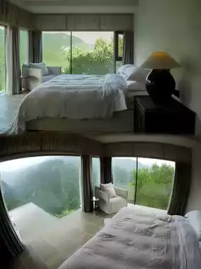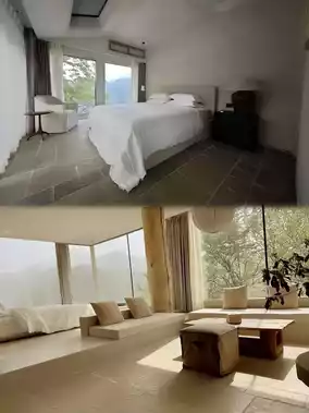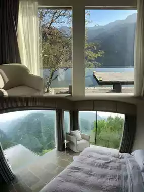 The room decor is rustic with original wood, yet it doesn't lack style, and the mountain view outside the window, I can give it 120 points. Lying in bed, the fairy aura is right before your eyes, only hating that I am not a bird, unable to shuttle through the valleys.