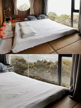 4️⃣The room is clean and sanitary, and it feels great to stay here! It happened to be a rainy day when I went there. I lay in bed and listened to the sound of rain. It was a kind of relaxation to avoid the surging crowds and be one with nature.