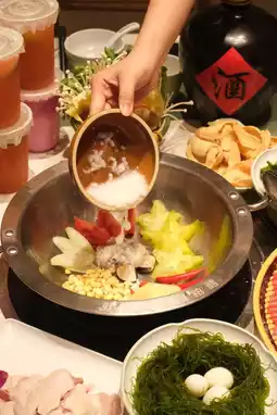 The sour vinegar produced by the fermentation of the wine tank, and the seafood is boiled into a sour soup, just drinking the soup base feels sour and spicy, very appetizing, the must-order Wenchang chicken, you can eat it after lightly boiling it for 5 minutes, the chicken is really particularly tender, it makes me too much~