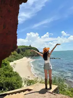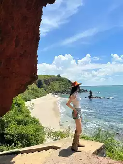 Large areas of volcanic rocks left by the volcano, the red volcanic cliffs have both mountains and sea🏔️