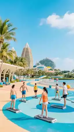 Budget: Fitness center fee 100 RMB, meals 150 RMB, water activities 200 RMB.