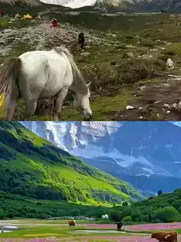 Folks, you really must visit Daocheng Yading once in your lifetime! 🏔There are stunning snow-capped mountains, golden meadows, crystal-clear lakes, and lush forests🌳. Every scene is breathtakingly beautiful, as if you have stumbled into a fairyland, and your soul is cleansed🥰. Daocheng Yading in spring🌸 is like a love letter💌 written by God to the world. From April to June, the snowmelt awakens the entire valley, wildflowers bloom everywhere on the plateau🌼, glaciers and meadows snuggle up to each other, and prayer flags flutter in the wind with the sound of chanting. It is indeed a must-visit "last pure land on the blue planet". And Daocheng Yading in summer is also super beautiful, with green grasslands, gurgling streams🌊, clear lakes, and towering snow-capped mountains. The scenery is simply amazing!