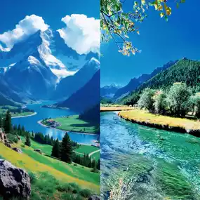 Snow-capped peaks, glacial lakes, and colorful meadows#sichuan