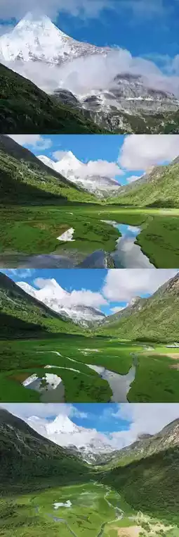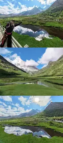 ▫️Luorong Pasture📸 Filming location for "I Belonged to You"! This vast beautiful grassland with three majestic sacred mountains in the background offers the best views (with meadows, streams, grazing yaks, and mountain reflections all in one frame). Here you'll see the clearest view of Mount Jampelyang.