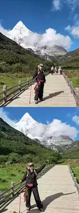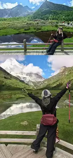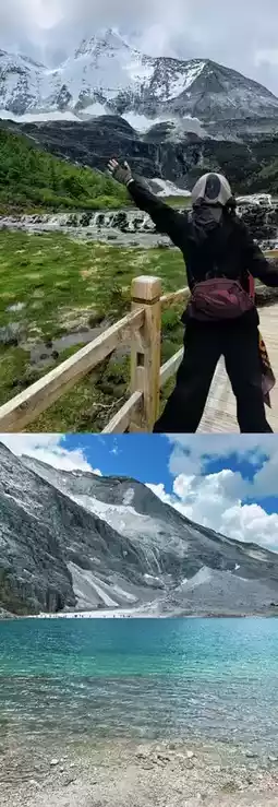 We entered the scenic area right at opening time when crowds were thin, allowing us to capture perfect shots of people-free landscapes. Originally planning just the short route (and with the long route closed until our visit day), we were surprised when the long route opened on our visit day! With no altitude sickness symptoms, we spontaneously decided to complete the most spectacular routes to Milk Lake and Five-Color Lake. Staying at the "Songtsam Yading Lodge" inside the park saved us 40+ minutes of travel time compared to regular visitors. From the hotel entrance, we took a village shuttle bus for about 15 minutes to Zhaguanbeng to begin our hiking adventure. After reaching Chonggu Temple/Chonggu Meadow (where you can buy tickets for the electric cart to Luorong Pasture), we walked around Luorong Pasture before following signs deeper into the trails to Milk Lake and Five-Color Lake.