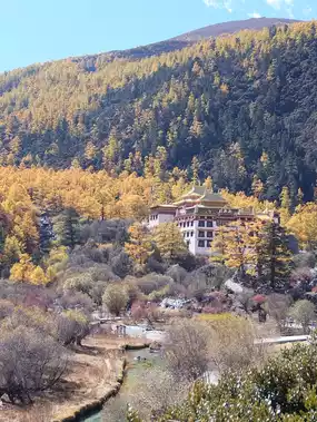 It is a dream destination for many people. October is the most beautiful time when the leaves change color. The yellow leaves contrast with the snow-capped mountains.