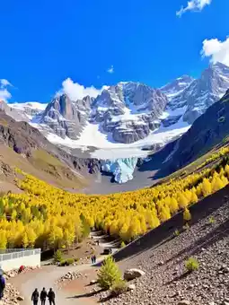 - Azure skies contrasting with snowy peaks