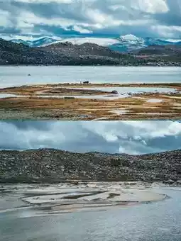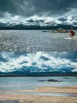 But! At the end of the rough road is the ultimate snowy mountain sacred lake scenery. Unforgettable is following animal tracks to the lakeside. At that moment, the world is silent except for the gentle lapping of water on the shore.