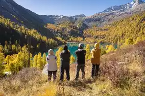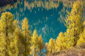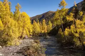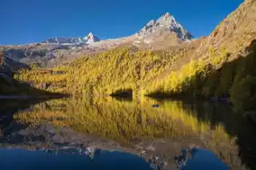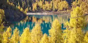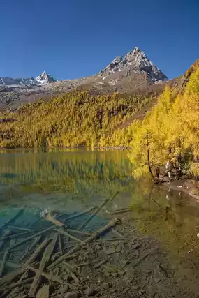 In golden October, the forest is ablaze with color, and the lake reflects the snow mountains beautifully!