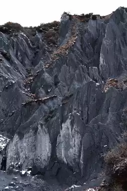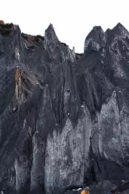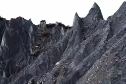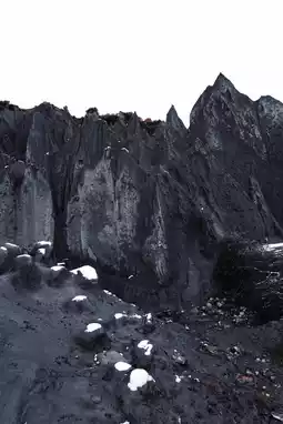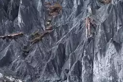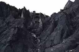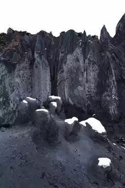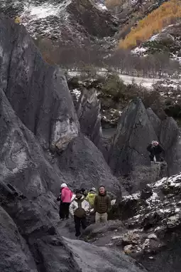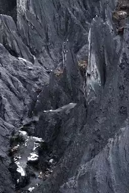 After the snow, "Little Moxi" seemed muted. The black mylonite mountain body pierced out from the gray-white world, its edges sharp as if chopped by a giant axe. Snow remained embedded in the rock crevices, the black and white contrast more primitive than the "filtered Mars" look of Moxi Park. The biggest surprise was no railings or boardwalks; we could step directly onto the rock surface—one step down, a crisp "crack" sound as the snow crust broke, revealing the shiny black beneath, like the earth had been waxed. My companion Xiao Zhuo flew the drone up to 120 meters; the camera dove down, showing the four of us like grains of salt scattered on an inkstone, with the background resembling coal slag rice paper crumpled by giant hands.