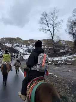 The last 2 kilometers to "Little Moxi" is a farm road, which after melting snow looked like freshly unwrapped chocolate—soft and sticky. Two men wrapped in cloaks stood at the entrance, holding not the usual "photo horses" from the park, but genuine Ganzi ponies. One man spoke in halting Mandarin: "Inside, the mud is knee-deep. If the horse goes in, or a person goes in, the shoes are gone." The bargaining felt like a small bonfire party: the man asked for 80 yuan round trip, we offered 60, he shook his head and pointed to the sky saying the snow was thick. We handed over a bottle of Red Bull, he twisted it open, drank half, wiped his mouth, and said "Let's go!"—deal done.