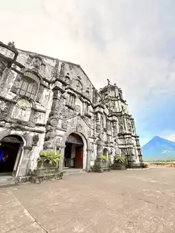 Daraga Church in Albay is a quiet, centuries-old landmark with a stunning view of Mayon Volcano. Built in the 1700s using volcanic stone, its weathered walls and detailed carvings feel like pages from a history book.
