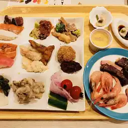 The dinner buffet has over 60 kinds of ingredients including homemade roast beef and nigiri sushi. Of course, there are also special dishes made by on-site chefs, such as charcoal-grilled beef tongue, crispy fried tempura, and sashimi sushi made on the spot by sushi chefs. There is also a dessert counter with sasada, cakes, fruits, etc. Here you can choose your favorite ingredients to make your own original ice cream. The children will definitely be very satisfied!