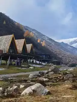 The homestay is located at the foot of the highest Ming Great Wall ruins, surrounded by forests, meadows, and endless snow-capped mountains. It has 8 guest rooms, including 6 triangular treehouses and 2 lotus leaf treehouses. The treehouses are embraced by forest and snow mountains, with open highland meadows outside the window.