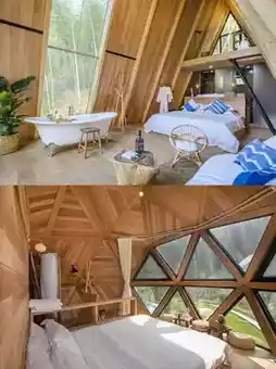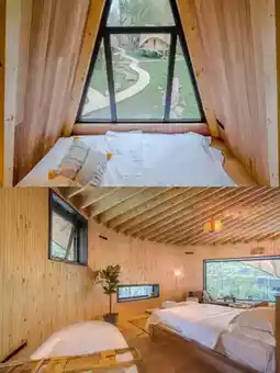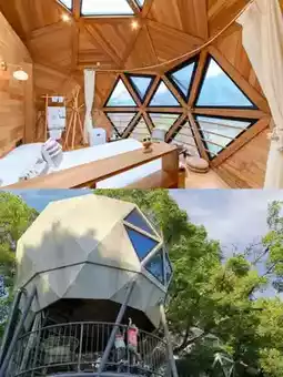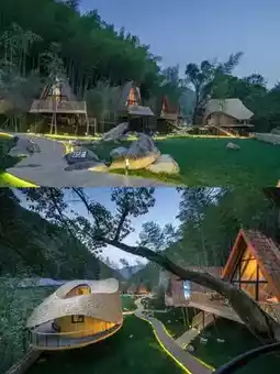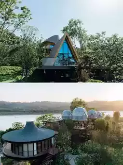 The homestay is located on the banks of the Qingshan River, upstream of the Yangtze River, with 16 guest rooms, including 7 triangular treehouses, 6 starry sky dome treehouses, 1 bird's nest treehouse, and 2 lotus leaf treehouses. The camp includes a sky pasture, natural camping, Qingshan farm, RVs, and many other business forms.