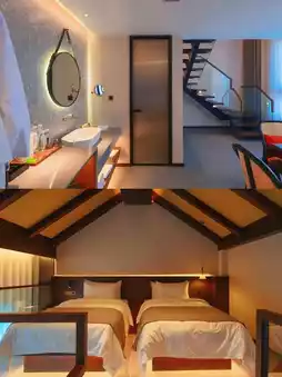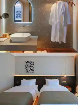 ✅️The room showcases unique craftsmanship with a minimalist yet cozy decor, where every detail reflects quality. The well-organized layout creates a spacious feel. The bedding is soft, comfortable, and impeccably clean for a perfect night's sleep.