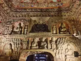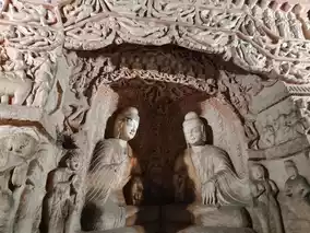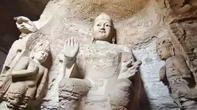 The Yungang Grottoes are located in Datong City, Shanxi Province. Carving began in the third year of the Huangshi era of the Northern Wei Dynasty (398 AD). It is the first product in China combining imperial political power with religious belief, and also the first grotto primarily featuring stone carvings, pioneering large-scale stone carving art in China. Although the Mogao Caves in Dunhuang and the Maijishan Grottoes in Tianshui were carved earlier than the Yungang Grottoes, they mainly feature clay sculptures and murals. The Yungang Grottoes integrate artistic styles from various Western Regions, reflecting cultural exchanges between the East and West. With Emperor Xiaowen of Northern Wei, Tuoba Hong (Yuan Hong), leading a southern campaign and relocating the capital to Luoyang, larger-scale grotto carving shifted to Longmen, pushing Chinese stone carving art to its peak.