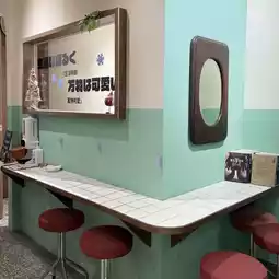 Walking from the MRT Zhongshan Station to Chifeng Street, you will immediately notice the logo of a girl wearing a red painter's hat and a bright Japanese light box with red letters on a white background. The store is on the second floor, and as soon as you enter the door you're transported back to the 1970s. The floor tiles are made of terrazzo, a common material in old houses, and the furniture is made of wooden cabinets and retro sofas in antique tones. Every corner of the store has become a popular check-in spot. In addition to the slogan "Life is bright and everything is cute" written in Chinese and Japanese on the wall, the small balcony is especially popular, with customers often coming in and out to take pictures.