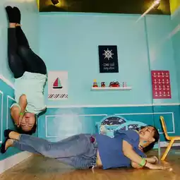When we went in, I just could not understand the logic of putting all stuff on the ceiling. Whenever the guide would direct us what to do and even tell us what emotions to show, we don't understand yet we just give her our trust and follow her.