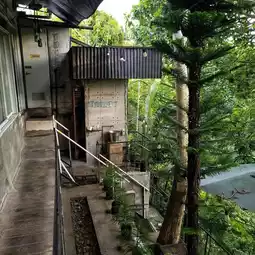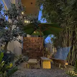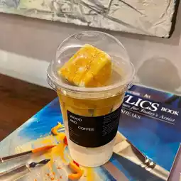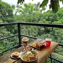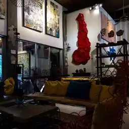 The Café is located in a Container van house and has a wooden signage, “Gil Bumanlag Gallery” at the front next to the gate.
