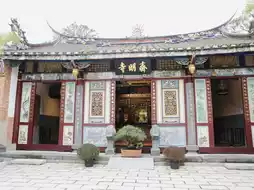 The ancient path of Zhaiming Temple in Daxi, Taoyuan is a century-old monument with a quaint architectural style. Initially designed in the traditional three-section compound form, the temple greets visitors with a statue of Guanyin and a small lotus pond at the entrance. The three-section compound design, complemented by lush greenery at the entrance and within the temple, creates a serene environment.