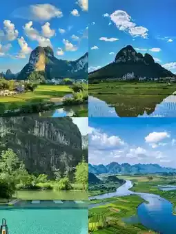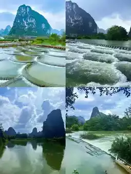 Here, the green mountains and clear waters are surrounded by beautiful scenery. Taking a bamboo raft to enjoy the charming scenery on both sides is like stepping into the landscapes of Guilin.