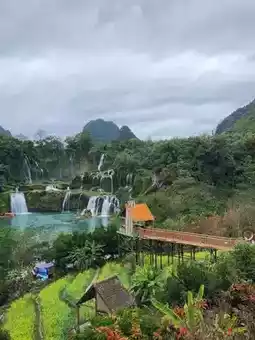 💦Detian Transnational Waterfall Scenic Area, the cross-border waterfall on the China-Vietnam border, seems to be pouring down from the sky, with water mist sprinkled lightly, which is beautiful🌈.