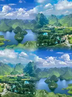 • Detian Transnational Waterfall: The largest transnational waterfall in Asia and the fourth largest in the world, spanning China and Vietnam. The waterfall is majestic, with water cascading down, creating a misty atmosphere that makes you feel like you're in a fairyland.