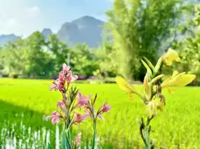 📅Travel tips: Bamboo rafting is a popular activity in Mingshi Tianyuan, and the whole journey takes about 40 minutes [6:00]. During the rafting process, you can enjoy the beautiful mountains and pastoral scenery reflected in the river, and feel the tranquility and harmony of nature. Secondly, you can go to the Seeding farm run by Mingshi Nari Hotel for shooting activities. You can also enjoy the pleasure of coffee ☕️ in the golden rice fields.