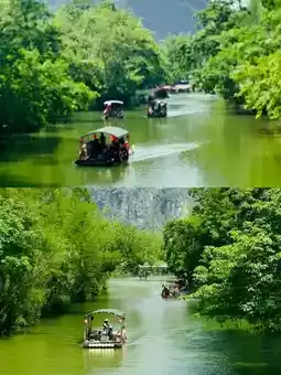 📍 Morning: Boat tour through Anping Fairy River’s "waterborne karst" scenery—nature’s masterpiece.
