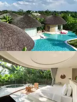Banana groves and standalone mushroom-shaped huts🍄 line the Heishui River. Comprising four boutique brands—Wanxiang, Yebai, Jijian, and Xikong—it offers a Southeast Asian wild luxury vibe, with photogenic outdoor soaking pools.