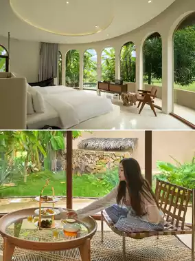 Unobstructed first-line sea views, entrance surrounded by banana groves, truly Bali-style! At dusk, sit quietly by the infinity pool and admire the stunning sunset glow—this moment is truly priceless