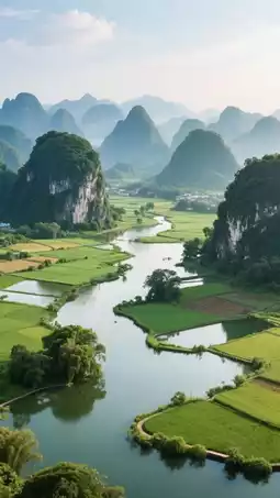 - 🏞️ Mingshi Pastoral — "Little Guilin of the South," with poetic rice fields, peak forests, and small rivers
