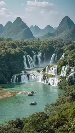 Activities: Take a bamboo raft to get close to the waterfall (30 RMB/person), photograph the China-Vietnam border marker in the mist; climb the viewing platform for a panoramic view.