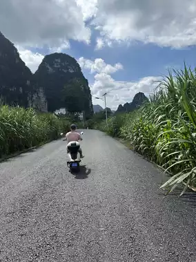 The best way to explore is by renting a scooter and riding freely through the winding roads and peaceful countryside. We rented two scooters for 2.5 hours for just 100 yuan total, which was a great deal. There are several routes to choose from, and some take you all the way to the most remote villages I’ve ever seen — truly off the beaten path.