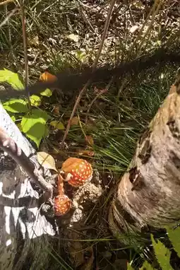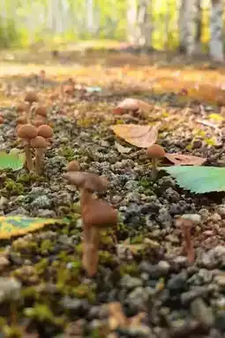 Today's mushrooms 🍄 are particularly eye-catching. Some are just breaking through the soil, some are stretching out like umbrellas, some grow under birch trees, and others are wildly sprouting along the paths. There are dark boletus mushrooms, brightly colored poisonous mushrooms, and even a little brown snake 🐍 crossing the road, a curious squirrel 🐿 looking for food, and a leisurely bluebird 🐦 strolling by.