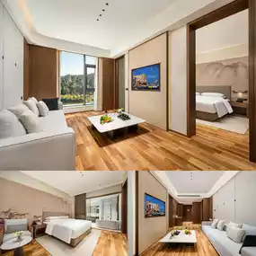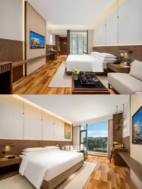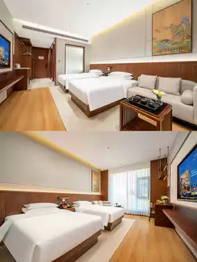 The room I stayed in was spacious, bright, warm, and comfortable, with soft bedding ๐ and a large bathroom that was very clean. ๐งผ The room is smart, with Xiaodu controlling everything, and there is also a robot meal delivery service, which is very convenient. ๐ค The soundproofing is also very good, so you can sleep well at night. ๐ด From the room window, you can see the Dongta Lake Wetland Park and the ancient tower shadows complementing each other, and the night view is beautiful. ๐