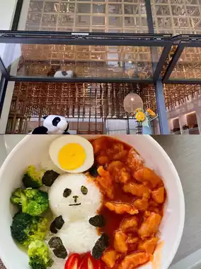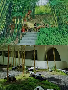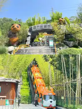 There is something like a fountain⛲ at the entrance of the park, the panda🐼 restaurant is very distinctive, and there are many panda elements in other places...