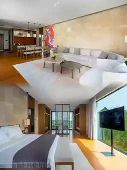 The guest rooms are a model of a "contemporary hermit's study." The bedding is made of 300-thread-count high-density cotton fabrics, and the custom-made natural latex mattress provides just the right amount of support. The German Hansgrohe shower system can simulate seven natural rainfall patterns. The amenities are from the French niche brand White Tea series, and the intelligent control system is hidden behind hand-carved wooden panels.