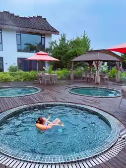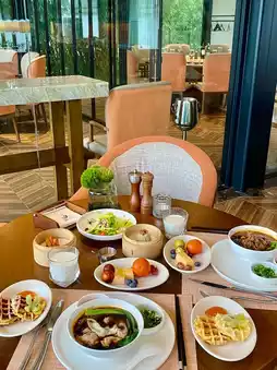 🍃 The B&B has a swimming pool 🏊♀️, a cafe ☕️, a restaurant 🍴, a large lawn, a gym, and a farm 👩🌾.