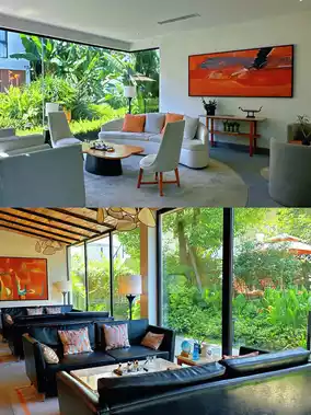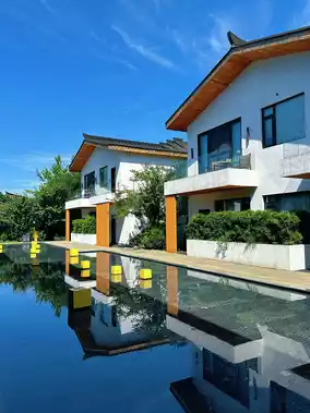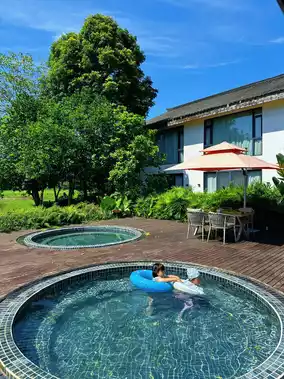 ✨The rooms are spacious and stylishly decorated, with floor-to-ceiling glass windows offering a distant view of nature🍃, like a vivid painting🖼️, so beautiful! The ground floor rooms also have private hot springs and small courtyards, making it a perfect place for weekend relaxation, taking kids out, or hanging out with friends