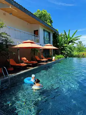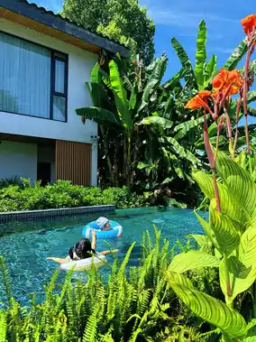 ✨The fully transparent swimming pool and hot tub surrounded by greenery make every photo📷 look great. Playing in the water💦 in such an environment is both physically and mentally comfortable and pleasant🥳