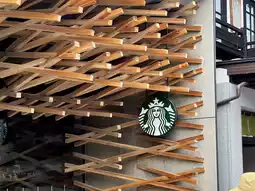 Next to this shrine, you will be surprised to find Starbucks' distinctive building, a combination of modern and traditional. The Starbucks coffee shop here has a unique architectural style. Sitting here and sipping coffee is like going back in time and traveling to another time and space.