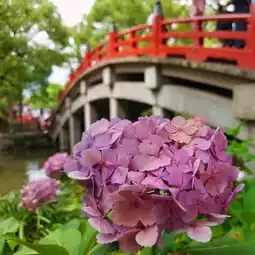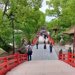 To worship the gods at Dazaifu Shrine, we must walk across the red bridge to cross the heart-shaped pond to the shrine. There are 3 bridges in a row. Each bridge represents "past, present and future", called "Taikobashi, Hirabashi and Taikobashi". Walking across this bridge is like purifying your body and mind before meeting the gods.