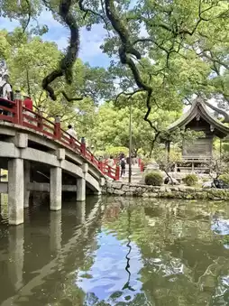 The morning mist had not yet dissipated as I strolled along the approach to Dazaifu Tenmangu Shrine. The shops on both sides exude the aroma of fresh plum cakes, mixed with the rustic woody scent, outlining a classic and tranquil picture. Passing through the vermilion torii and climbing up the stairs, the main hall of the shrine gradually comes into view, with its flying eaves and pointed corners contrasting with the lush green mountains and forests. In front of the main hall, wooden prayer signs are densely hung among the trees, like a forest carrying dreams and expectations. I gently scooped up the clear water in my hands to purify my body and mind, then bowed down before God with all my heart, praying for wisdom and peace. The plum blossoms are in full bloom in a corner of the courtyard, with pale pink and pure white complementing each other, as if whispering ancient poems. In the evening, the setting sun casts a golden veil over Tenmangu Shrine, and the birds' singing becomes clearer. I left with deep emotion. Dazaifu, with its elegance and tranquility, added a poetic and spiritual moment to my journey.