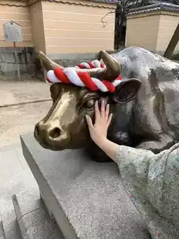 Dazaifu Tenmangu is the god of learning ✨ It is said to bring good luck in passing exams and academic success ✨ There is also a belief that stroking the head of the sacred cow will grant you wisdom ☺️