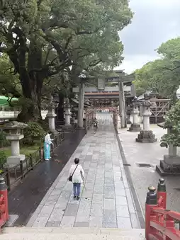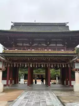 This shrine enshrines Sugawara no Michizane. As Michizane excelled in his studies, he is revered as the god of learning, and even today many students come to worship there. Highlights include the Taiko Bridge at Shinji Pond and the large camphor tree (a natural monument) in the precincts. It is also a famous plum blossom spot, with about 6,000 plum trees in full bloom, including the sacred Tobiume tree to the right of the main hall (an important cultural property), which is said to have flown from Kyoto in adoration of Michizane.