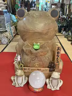 This temple is located in Ogori City, Fukuoka Prefecture. It is said to have been built by Gyoki Bosatsu around 730 AD. After the head priest brought back a jade frog from China, the number of frog ornaments increased. Currently, there are more than 2,000 frogs lined up, and it is popular with a wide range of generations, especially children. Locally, it is better known by the nickname Frog Temple than by its official name Nyoirinji Temple. Many people visit the temple to pray for road safety and good fortune, with puns such as "safe frog" and "money frog".